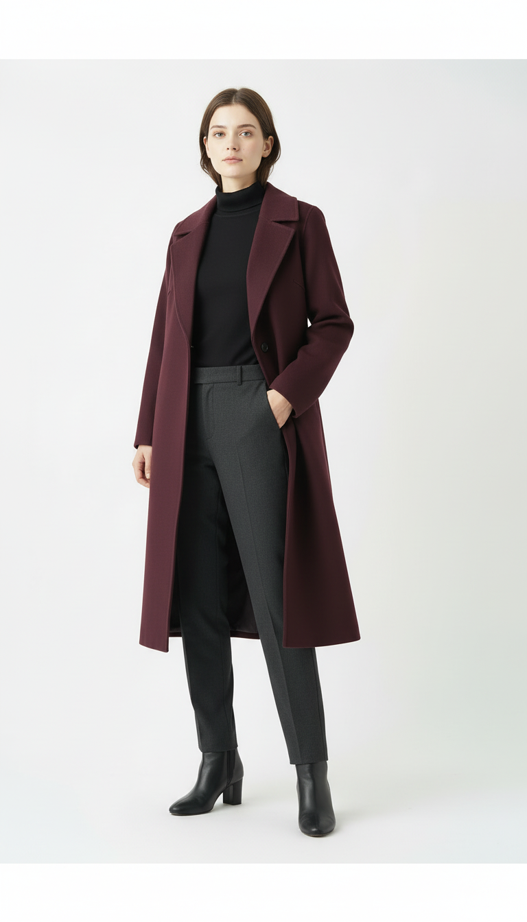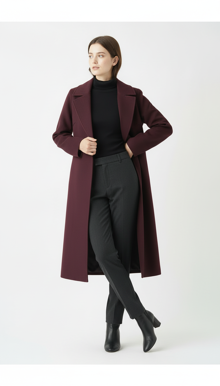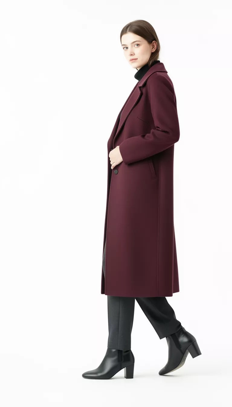 A refined longline coat designed with a timeless silhouette, offering a polished and elegant look for any occasion. Crafted from a wool and cashmere blend, it drapes beautifully and adds effortless sophistication to your winter wardrobe.