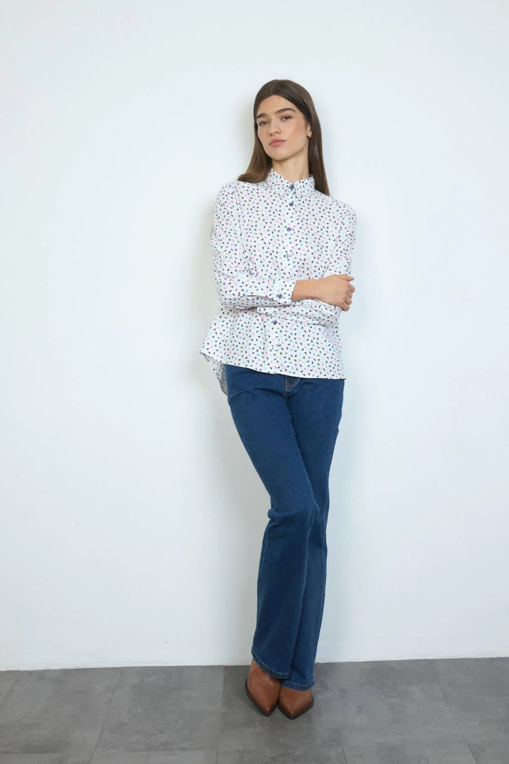 Printed shirt. Shirt collar. Button-front closure. Straight-cut design. Long sleeves with buttoned cuffs. Slightly rounded hem. Designed and made in Spain.